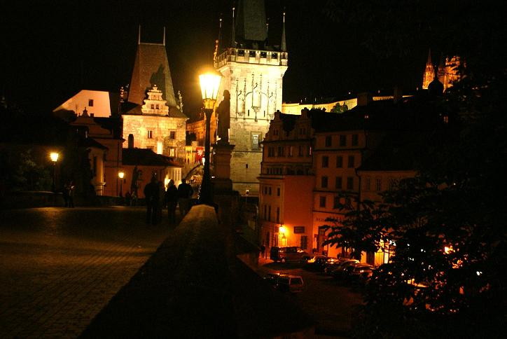 Prag Kleinseitner Brückenturm bei Nacht